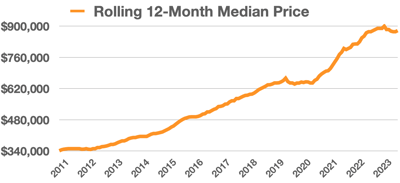As Denver homes have managed to hold their value even in this era of higher interest rates. The 12-month rolling median price for central Denver homes is $880,000, slightly below the February historic high of $900,000 and on par with September 2022.